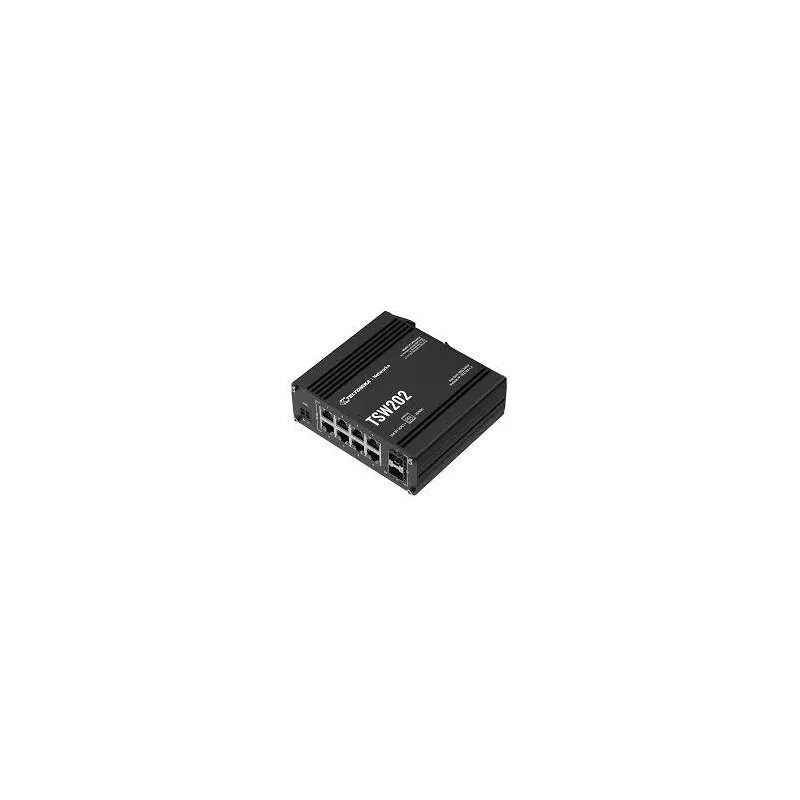 TSW202000000 , Type Managed , Switch layer L2 , Quality of Service (QoS) support Yes , Web-based management Yes , 8xBasic switching RJ-45 Ethernet ports quantity , Basic switching RJ-45 Ethernet ports type Gigabit Ethernet (10/100/1000) , 2xInstalled SFP modules quantity , Port mirroring Yes , Full duplex Yes , Switching capacity 20 Gbit/s , Product colour Aluminium/Blue , DIN rail mounting Yes , Power over Ethernet (PoE) Yes , 8xPower over Ethernet (PoE) ports quantity , Power over Ethernet (PoE) power per port 30 W , Total Power over Ethernet (PoE) budget 240 W , Width 132 mm , Depth 44.2 mm , Height 122 mm , Weight 610 g