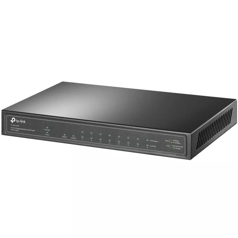 Switch, TP-LINK, TL-SG1210P, Desktop/pedestal, 9x10Base-T / 100Base-TX / 1000Base-T, 1xSFP, PoE+ ports 8, TL-SG1210P