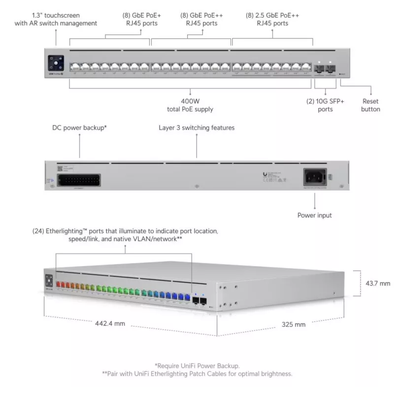 Switch, UBIQUITI, Pro Max 24 PoE, Type L3, 400 Watts, USW-PRO-MAX-24-POE