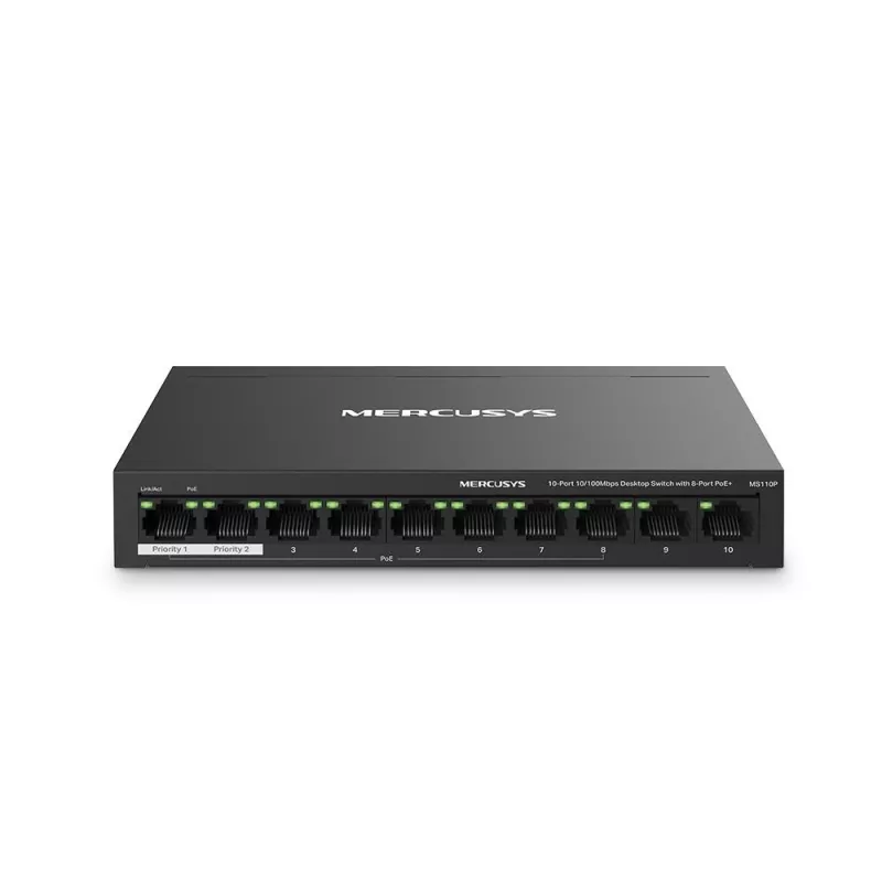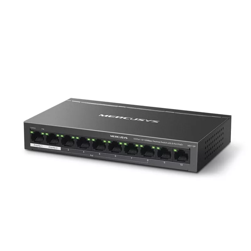 Switch, MERCUSYS, Desktop/pedestal, 10x10Base-T / 100Base-TX, PoE+ ports 8, MS110P