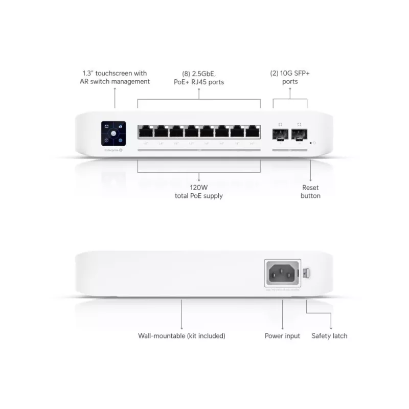 Switch, UBIQUITI, Switch Enterprise 8 PoE, Type L3, 8x2.5GbE, 2xSFP+, PoE ports 8, 120 Watts, USW-ENTERPRISE-8-POE
