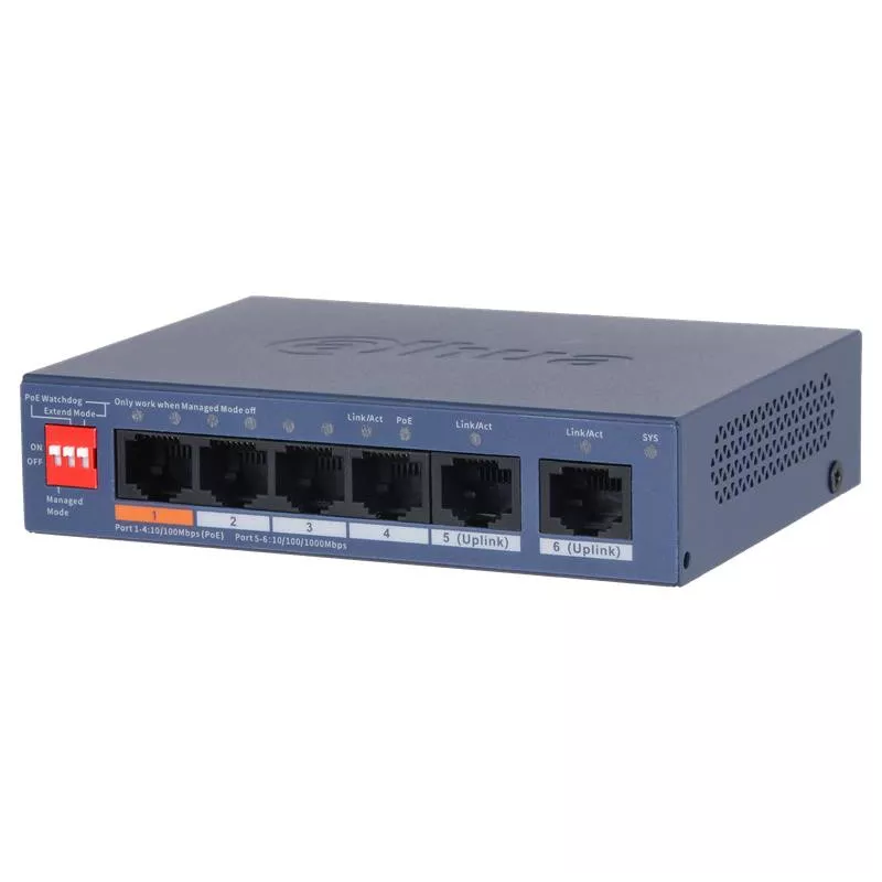 Switch, DAHUA, DH-CS4006-4ET2GT-60, Type L2, PoE ports 4, CS4006-4ET2GT-60