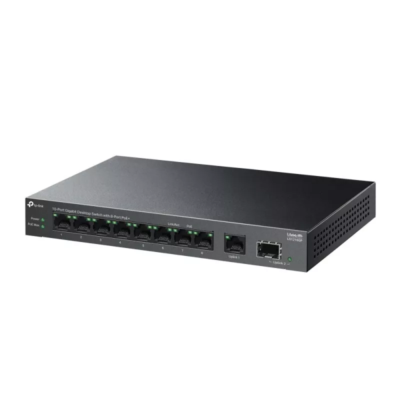 LS1210GP , Type Unmanaged , Quality of Service (QoS) support Yes , 9xBasic switching RJ-45 Ethernet ports quantity , Basic switching RJ-45 Ethernet ports type Gigabit Ethernet (10/100/1000) , 1xSFP module slots quantity , Switching capacity 20 Gbit/s , Forwarding rate 14.88 Mpps , Product colour Black , Power source DC/PoE , Power supply included Yes , Power over Ethernet (PoE) Yes , 8xPower over Ethernet (PoE) ports quantity , Power over Ethernet (PoE) power per port 30 W , Total Power over Ethernet (PoE) budget 61 W , Width 209 mm , Depth 126 mm , Height 26 mm