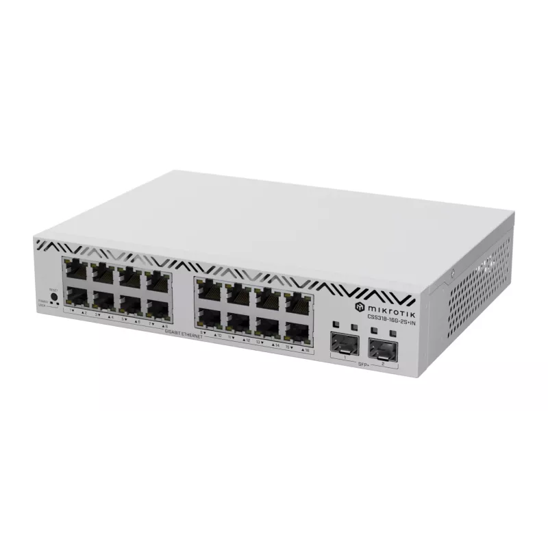 - MIKROTIK CSS318-16G-2S+IN. SWITCH TYPE: MANAGED. BASIC SWITCHING RJ-45 ETHERNET PORTS TYPE: GIGABIT ETHERNET (10/100/1000), BASIC SWITCHING RJ-45 ETHERNET PORTS QUANTITY: 16, INSTALLED SFP+ MODULES QUANTITY: 2. RACK MOUNTING