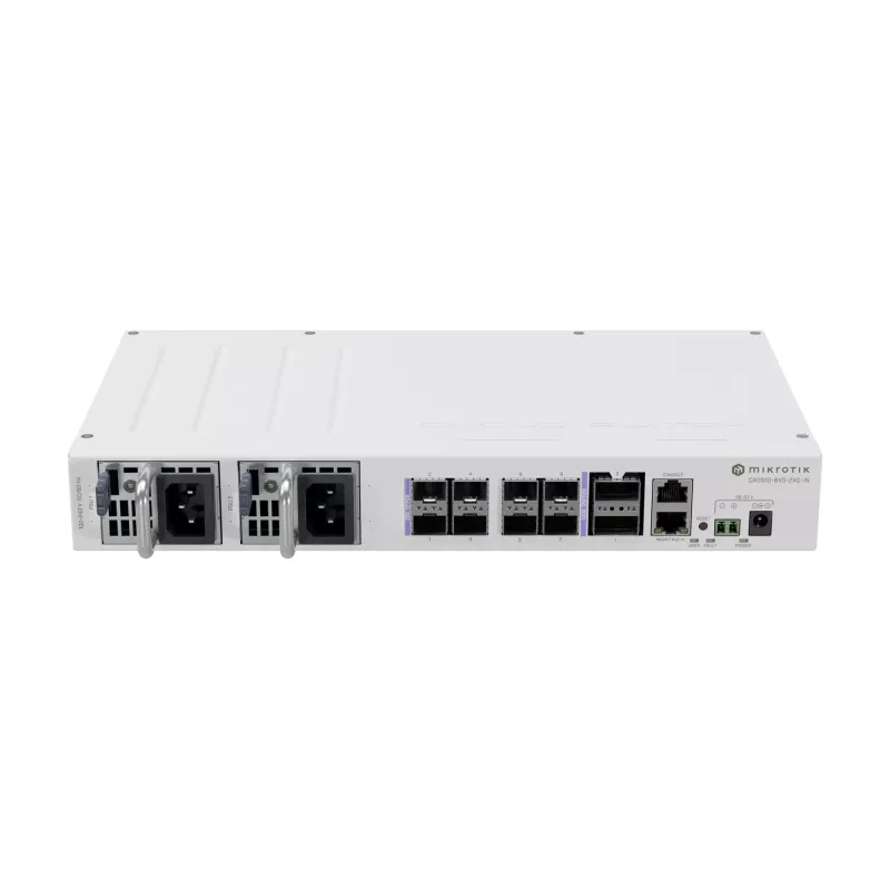 MIKROTIK CRS510-8XS-2XQ-IN. SWITCH LAYER: L3. BASIC SWITCHING RJ-45 ETHERNET PORTS TYPE: FAST ETHERNET (10/100), BASIC SWITCHING RJ-45 ETHERNET PORTS QUANTITY: 1, CONSOLE PORT: RJ-45. NETWORKING STANDARDS: IEEE 802.3BT. DC INPUT VOLTAGE: 36 - 57 V. POWER