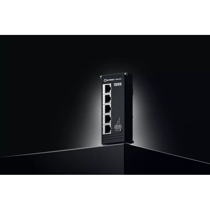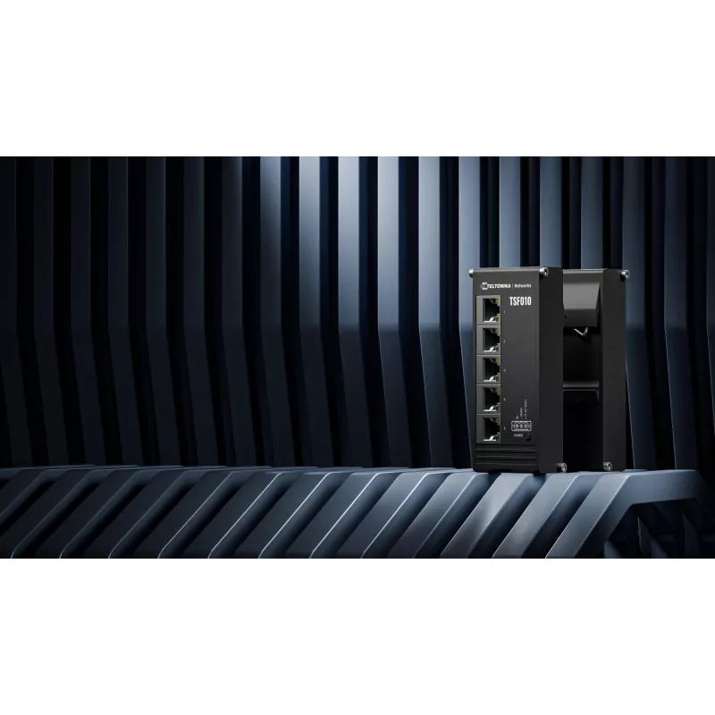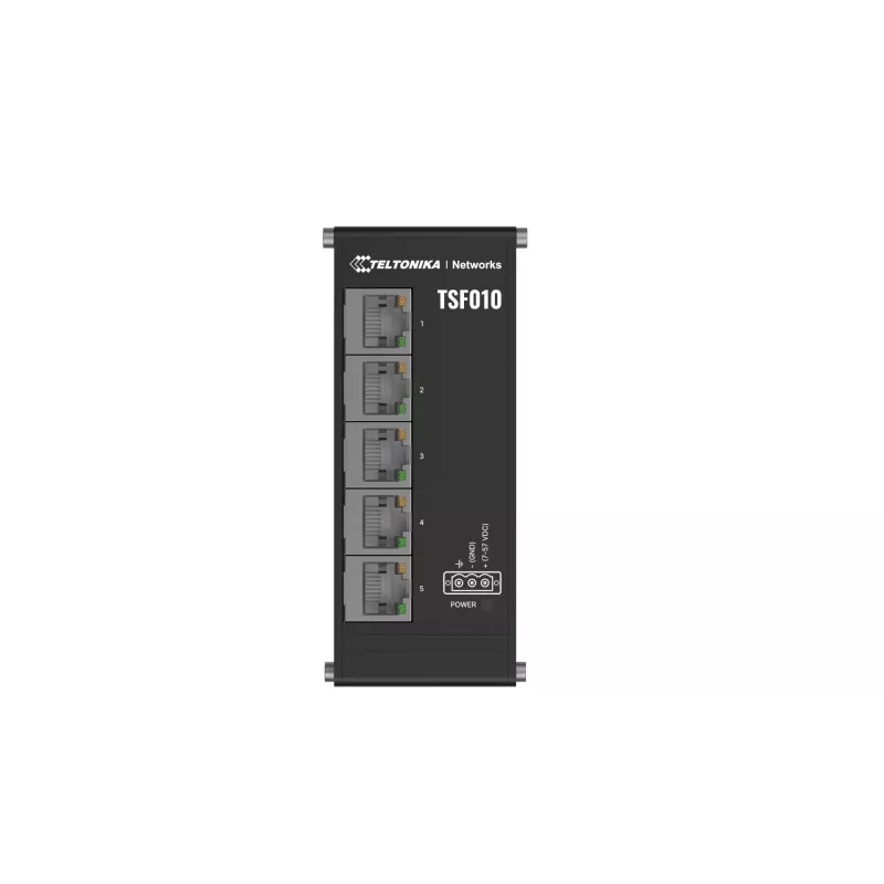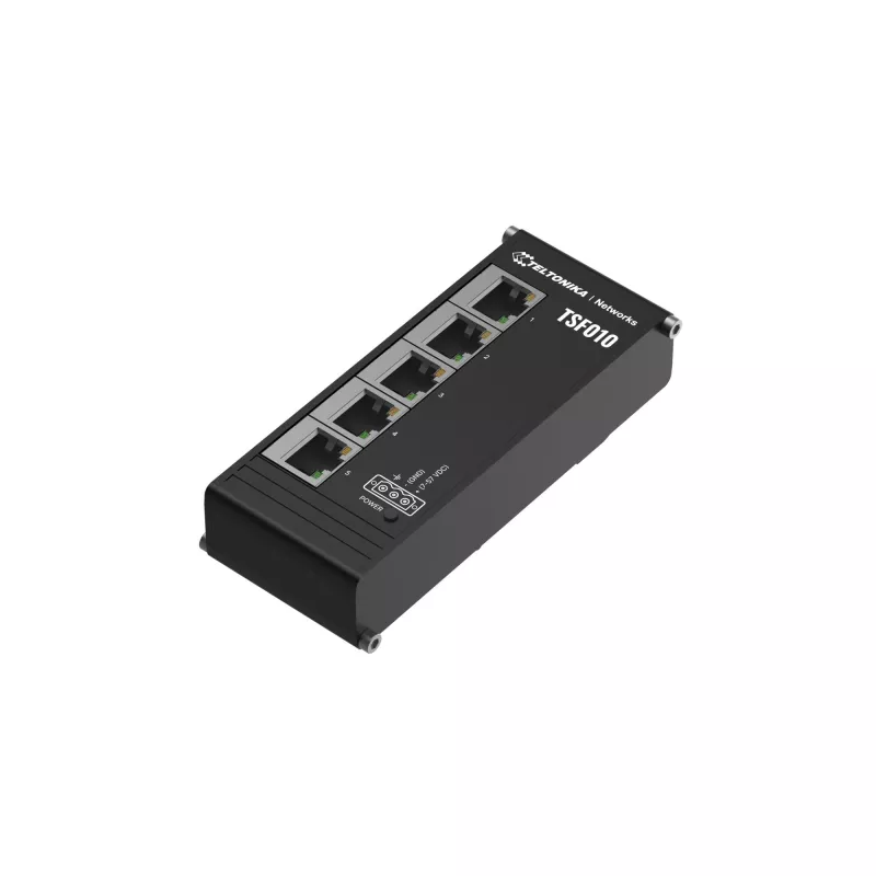 Type Unmanaged , 5xBasic switching RJ-45 Ethernet ports quantity , Basic switching RJ-45 Ethernet ports type Fast Ethernet (10/100) , Full duplex Yes , Switching capacity 10 Gbit/s , Form factor DIN rail , Product colour Black , DIN rail mounting Yes , Power source DC , Power consumption (typical) 1 W , Width 113 mm , Depth 50 mm , Height 28 mm , Weight 142 g