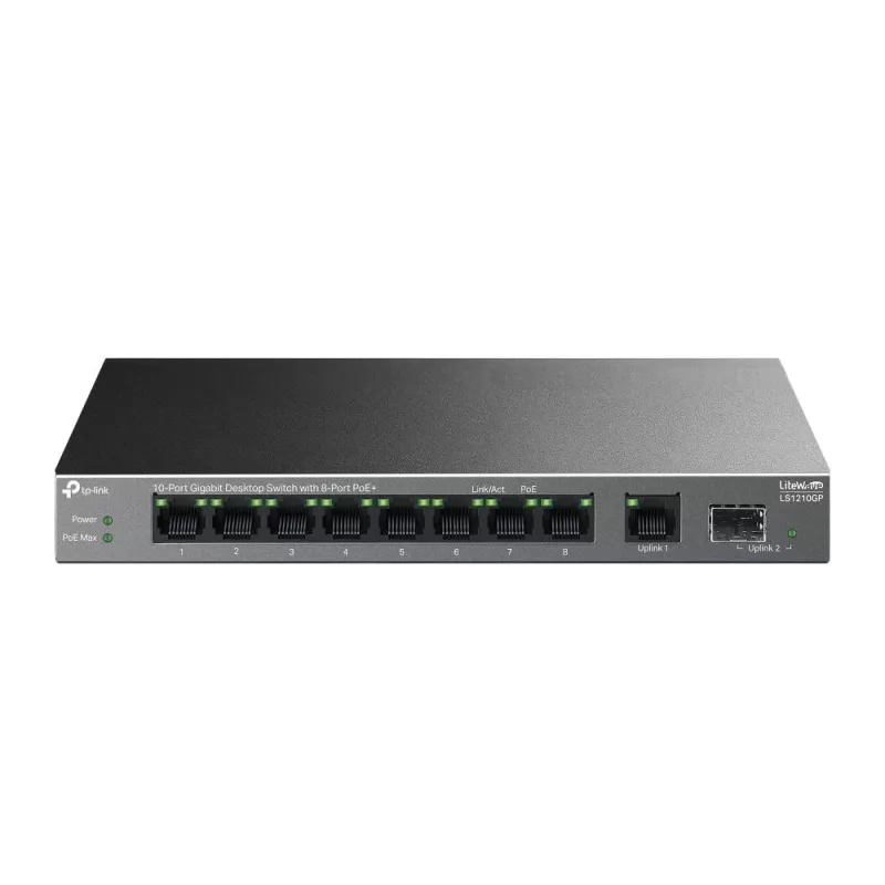 LS1210GP , Type Unmanaged , Quality of Service (QoS) support Yes , 9xBasic switching RJ-45 Ethernet ports quantity , Basic switching RJ-45 Ethernet ports type Gigabit Ethernet (10/100/1000) , 1xSFP module slots quantity , Switching capacity 20 Gbit/s , Forwarding rate 14.88 Mpps , Product colour Black , Power source DC/PoE , Power supply included Yes , Power over Ethernet (PoE) Yes , 8xPower over Ethernet (PoE) ports quantity , Power over Ethernet (PoE) power per port 30 W , Total Power over Ethernet (PoE) budget 61 W , Width 209 mm , Depth 126 mm , Height 26 mm
