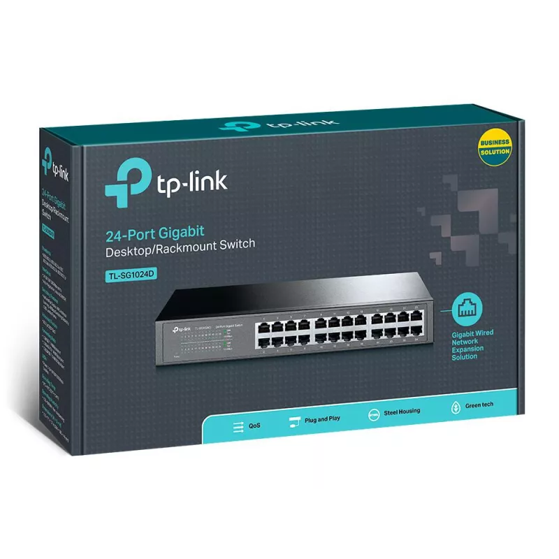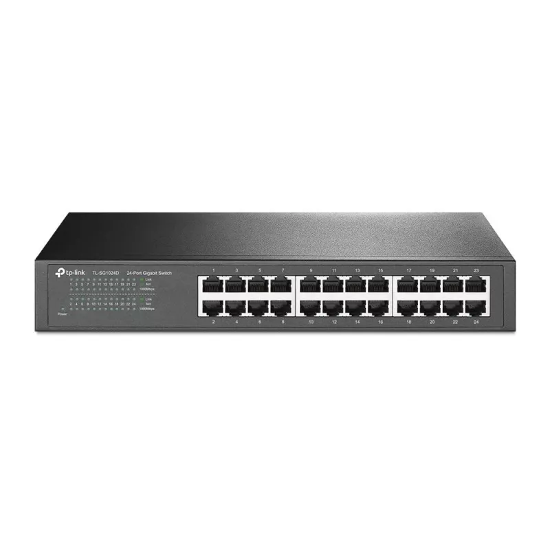 TP-LINK 24-PORT GIGABIT DESKTOP/RACKMOUNT NETWORK SWITCH. SWITCH TYPE: UNMANAGED. BASIC SWITCHING RJ-45 ETHERNET PORTS TYPE: GIGABIT ETHERNET (10/100/1000), BASIC SWITCHING RJ-45 ETHERNET PORTS QUANTITY: 24. FULL DUPLEX. MAC ADDRESS TABLE: 8000 ENTRIES, S