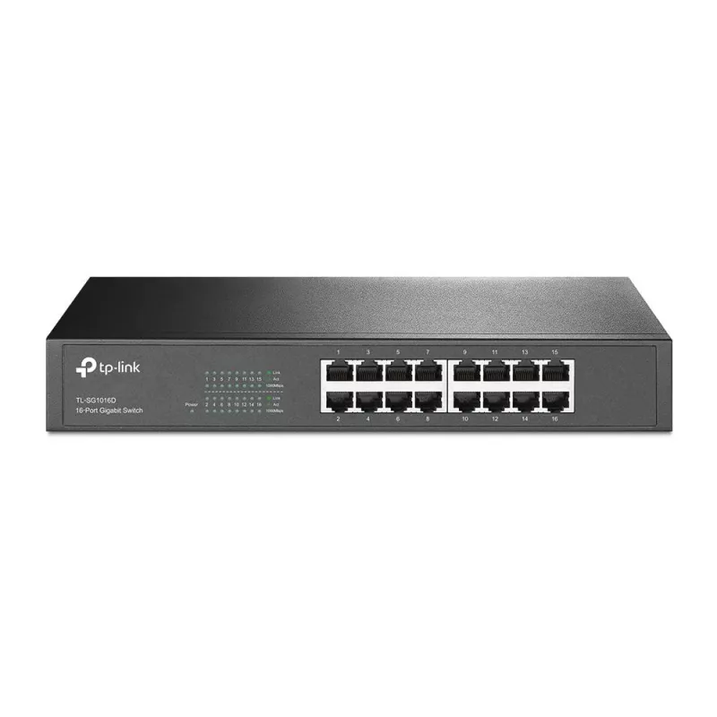 TP-LINK 16-PORT GIGABIT DESKTOP/RACKMOUNT NETWORK SWITCH. SWITCH TYPE: UNMANAGED. BASIC SWITCHING RJ-45 ETHERNET PORTS TYPE: GIGABIT ETHERNET (10/100/1000), BASIC SWITCHING RJ-45 ETHERNET PORTS QUANTITY: 16. FULL DUPLEX. MAC ADDRESS TABLE: 8000 ENTRIES, S