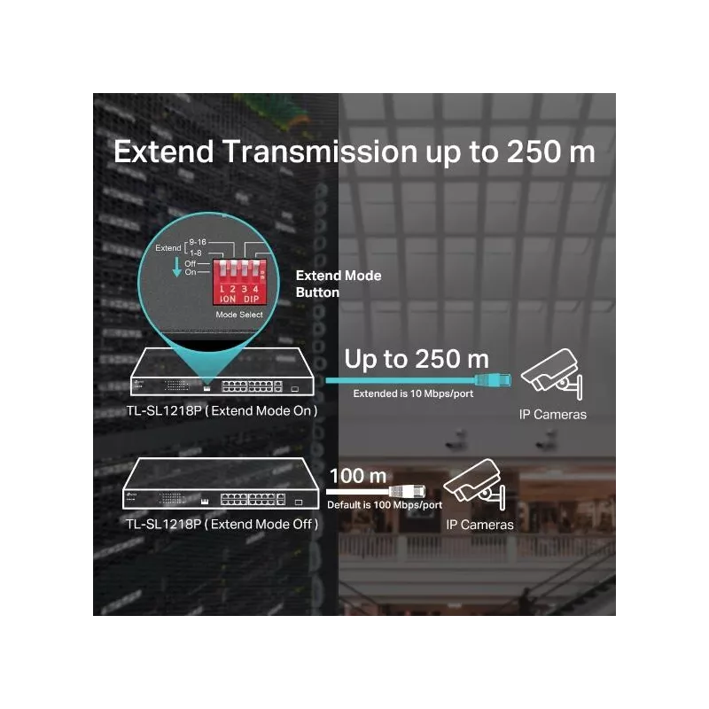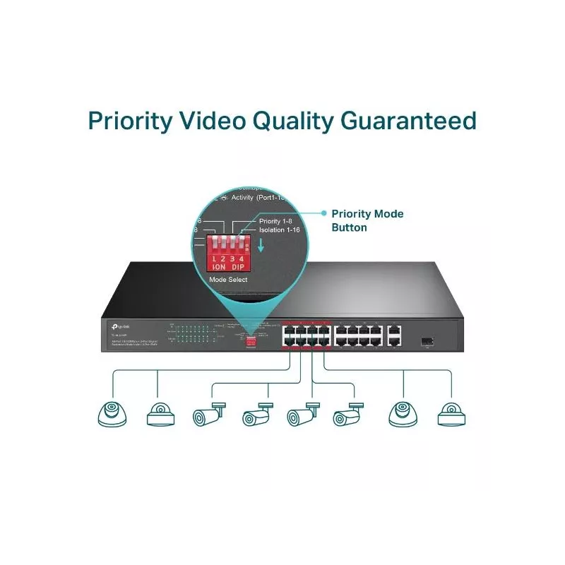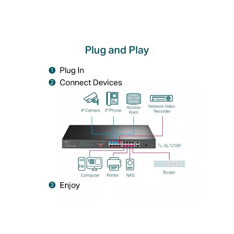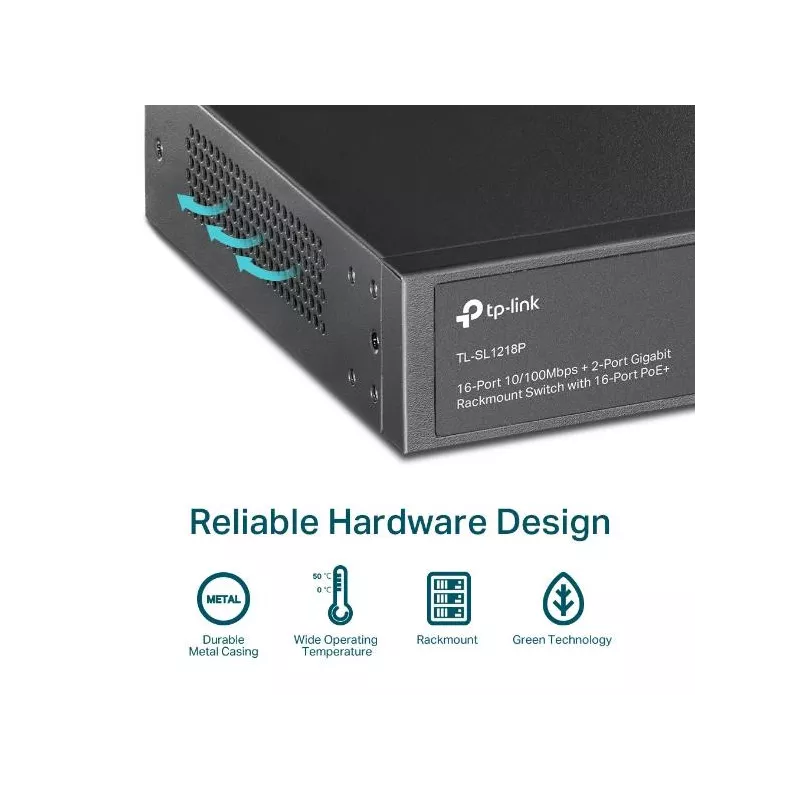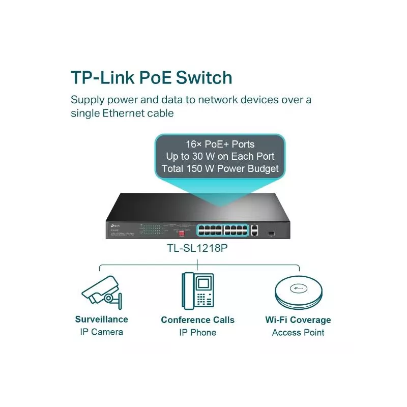 Type Unmanaged , 18xBasic switching RJ-45 Ethernet ports quantity , Basic switching RJ-45 Ethernet ports type Gigabit Ethernet (10/100/1000) , 1xCombo SFP ports quantity , Switching capacity 7.2 Gbit/s , Forwarding rate 5.36 Mpps , Rack mounting Yes , Form factor 1U , Product colour Black , Power source AC , Power supply included Yes , Power over Ethernet (PoE) Yes , 16xPower over Ethernet plus (PoE+) ports quantity , Power over Ethernet (PoE) power per port 30 W , Total Power over Ethernet (PoE) budget 150 W , Width 440 mm , Depth 180 mm , Height 44 mm
