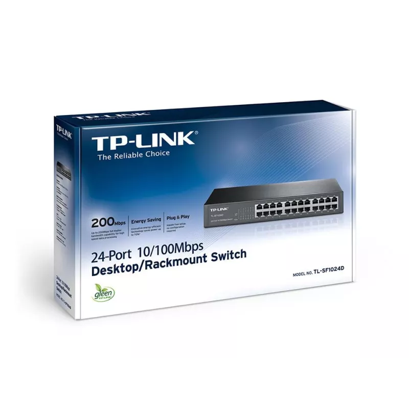 TP-LINK 24-PORT 10/100MBPS DESKTOP/RACKMOUNT NETWORK SWITCH. SWITCH TYPE: UNMANAGED. BASIC SWITCHING RJ-45 ETHERNET PORTS TYPE: FAST ETHERNET (10/100), BASIC SWITCHING RJ-45 ETHERNET PORTS QUANTITY: 24. FULL DUPLEX. MAC ADDRESS TABLE: 8000 ENTRIES, SWITCH