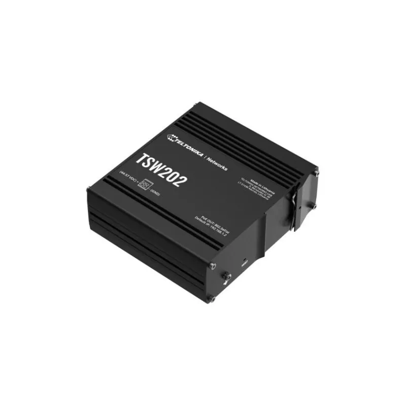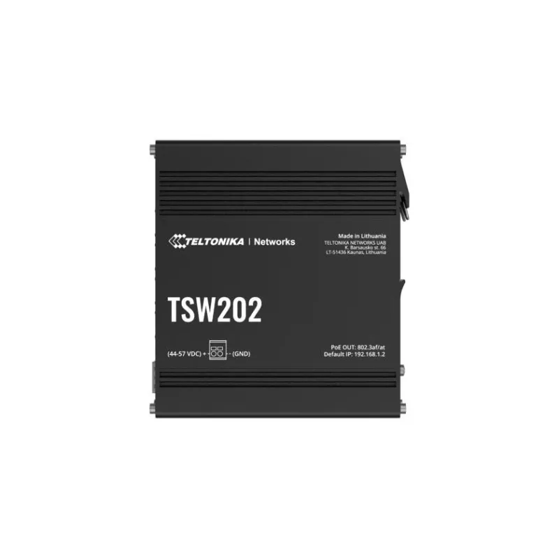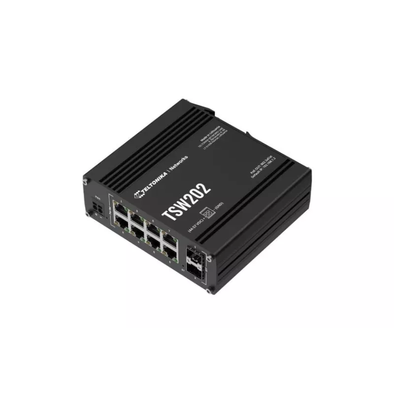 TSW202000000 , Type Managed , Switch layer L2 , Quality of Service (QoS) support Yes , Web-based management Yes , 8xBasic switching RJ-45 Ethernet ports quantity , Basic switching RJ-45 Ethernet ports type Gigabit Ethernet (10/100/1000) , 2xInstalled SFP modules quantity , Port mirroring Yes , Full duplex Yes , Switching capacity 20 Gbit/s , Product colour Aluminium/Blue , DIN rail mounting Yes , Power over Ethernet (PoE) Yes , 8xPower over Ethernet (PoE) ports quantity , Power over Ethernet (PoE) power per port 30 W , Total Power over Ethernet (PoE) budget 240 W , Width 132 mm , Depth 44.2 mm , Height 122 mm , Weight 610 g