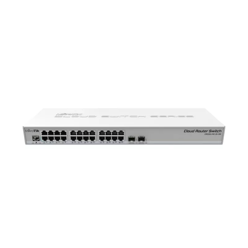 MIKROTIK CRS326-24G-2S+RM. SWITCH TYPE: MANAGED, SWITCH LAYER: L2. BASIC SWITCHING RJ-45 ETHERNET PORTS TYPE: GIGABIT ETHERNET (10/100/1000), BASIC SWITCHING RJ-45 ETHERNET PORTS QUANTITY: 24, CONSOLE PORT: RJ-45. NETWORKING STANDARDS: IEEE 802.1Q