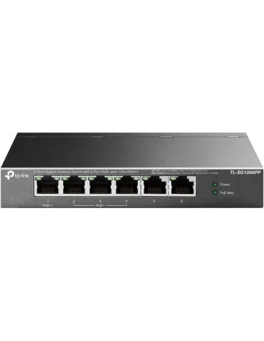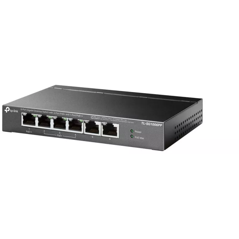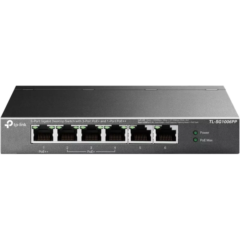 - TP-LINK 6-PORT GIGABIT DESKTOP SWITCH WITH 3-PORT POE+ AND 1-PORT POE++. SWITCH TYPE: UNMANAGED. BASIC SWITCHING RJ-45 ETHERNET PORTS TYPE: GIGABIT ETHERNET (10/100/1000), BASIC SWITCHING RJ-45 ETHERNET PORTS QUANTITY: 6. MAC ADDRESS TABLE: 4000 ENTRIES,