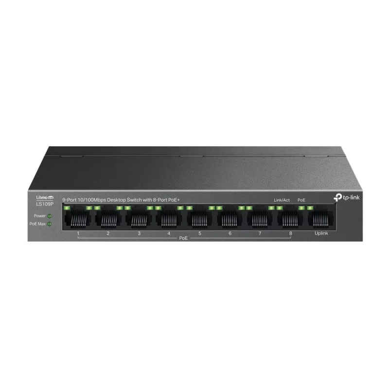 - TP-LINK LITEWAVE LS109P. SWITCH TYPE: UNMANAGED. BASIC SWITCHING RJ-45 ETHERNET PORTS TYPE: FAST ETHERNET (10/100), BASIC SWITCHING RJ-45 ETHERNET PORTS QUANTITY: 9. MAC ADDRESS TABLE: 2000 ENTRIES, SWITCHING CAPACITY: 1.8 GBIT/S. NETWORKING STANDARDS: IE