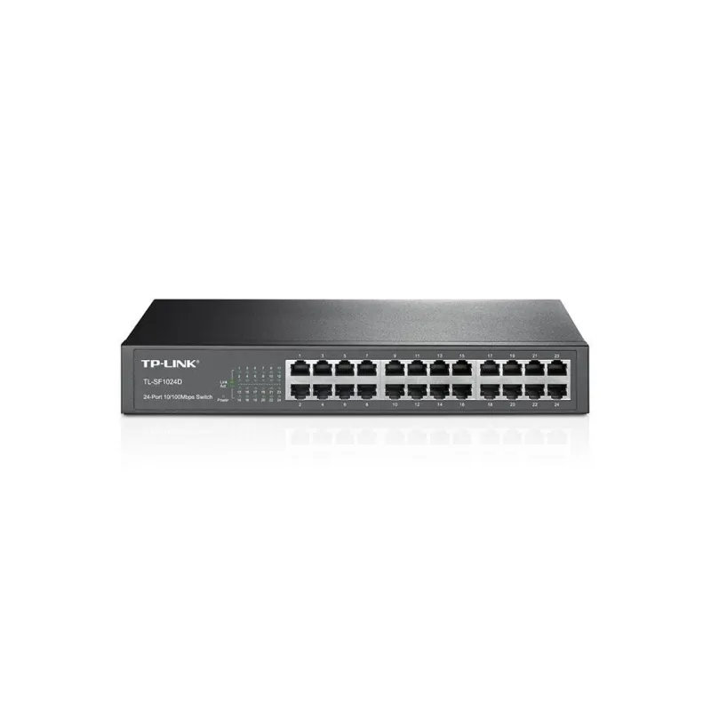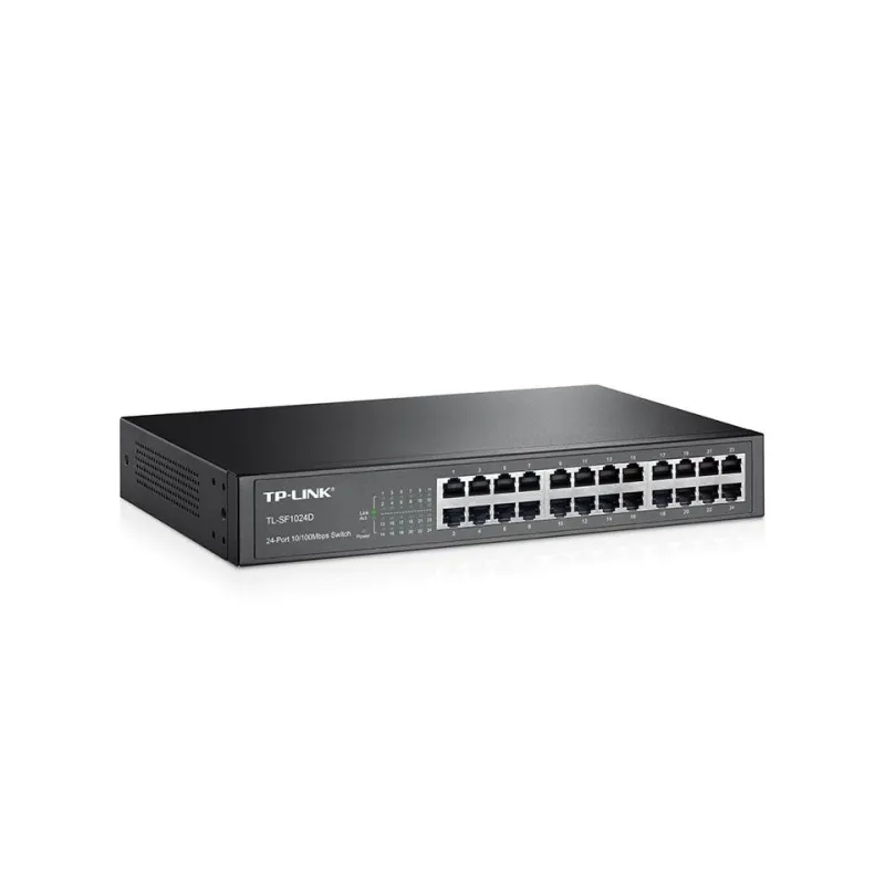 TP-LINK 24-PORT 10/100MBPS DESKTOP/RACKMOUNT NETWORK SWITCH. SWITCH TYPE: UNMANAGED. BASIC SWITCHING RJ-45 ETHERNET PORTS TYPE: FAST ETHERNET (10/100), BASIC SWITCHING RJ-45 ETHERNET PORTS QUANTITY: 24. FULL DUPLEX. MAC ADDRESS TABLE: 8000 ENTRIES, SWITCH