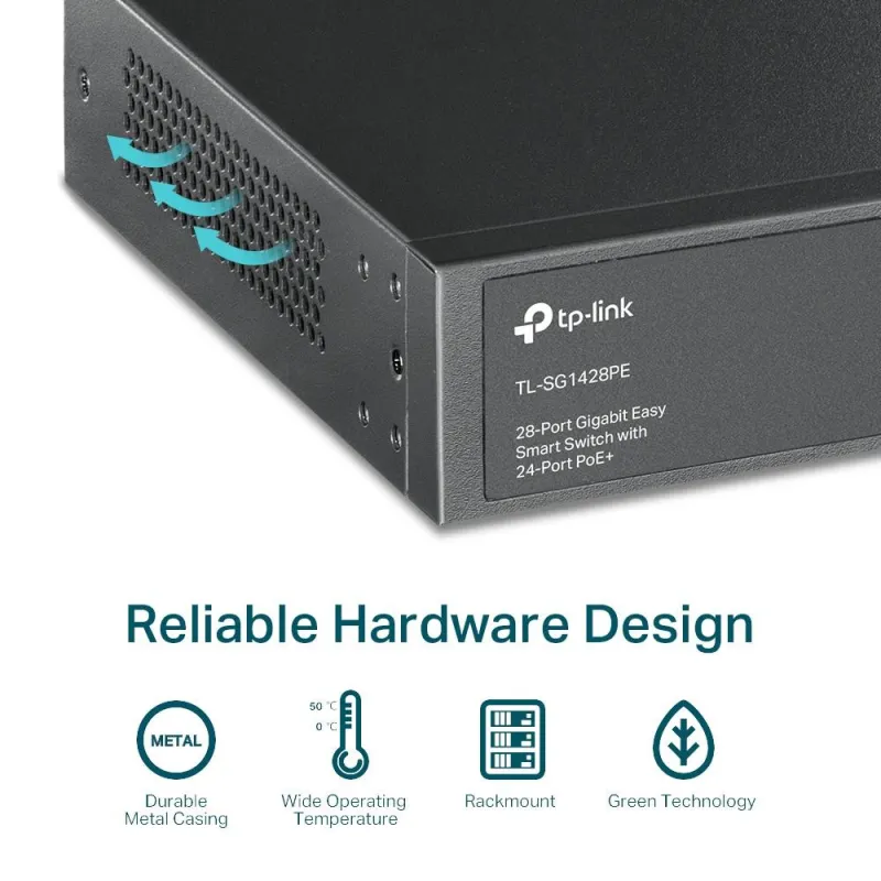 Type Managed , Switch layer L2 , Quality of Service (QoS) support Yes , Web-based management Yes , 26xBasic switching RJ-45 Ethernet ports quantity , Basic switching RJ-45 Ethernet ports type Gigabit Ethernet (10/100/1000) , 2xSFP module slots quantity , Port mirroring Yes , Fiber ethernet cabling technology 1000BASE-X , Switching capacity 56 Gbit/s , Forwarding rate 41.7 Mpps , Rack mounting Yes , Form factor 1U , Product colour Black , Power source AC , Power supply included Yes , Power over Ethernet (PoE) Yes , 24xPower over Ethernet plus (PoE+) ports quantity , Power over Ethernet (PoE) power per port 30 W , Total Power over Ethernet (PoE) budget 250 W , Width 440 mm , Depth 220 mm , Height 44 mm