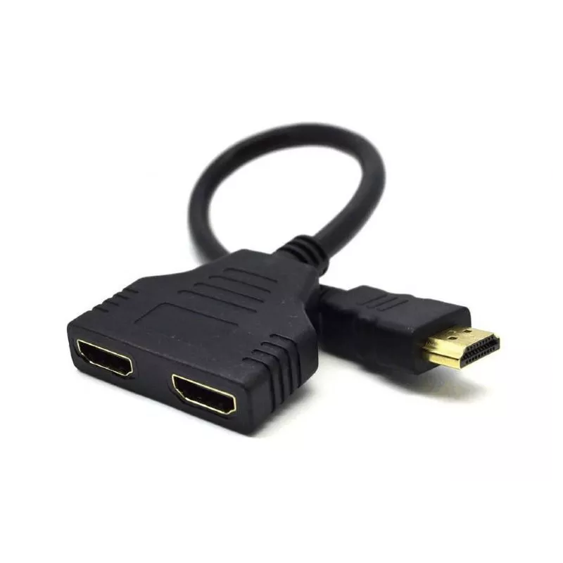 - ONE INPUT MALE PLUG, 2 OUTPUT HDMI OUTPUT RECEPTACLES, 19 PIN (A)