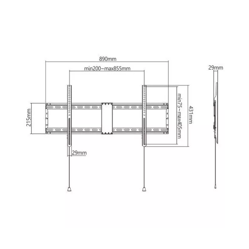 Max. weight 70 kg , Fits screens sized 43" - 90" , Distance to wall 2.9 cm , Colour Black