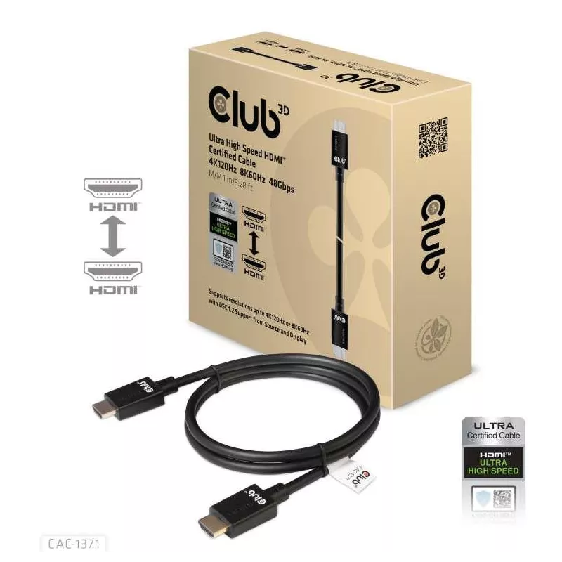 CABLE HDMI TO HDMI 1M/M/M CAC-1371 CLUB3D