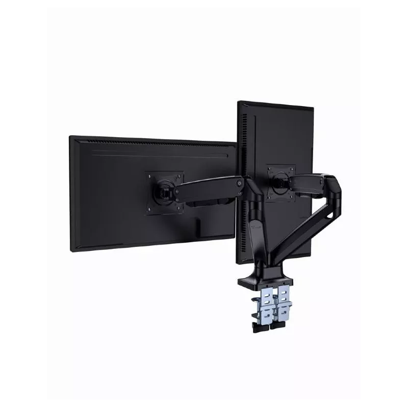 2xNumber of displays supported , Maximum weight capacity (per display) 10 kg , Maximum weight capacity 20 kg , Maximum screen size 88.9 cm (35") , Suitable for TV Yes , Mounting type Desk , Minimum VESA mount 75 x 75 mm , Maximum VESA mount 100 x 100 mm , Colour Black , Orientation Landscape/Portrait , Weight 4.45 kg
