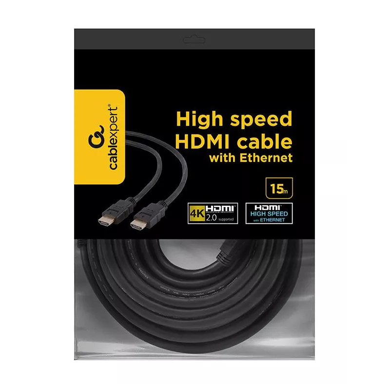 - GEMBIRD HDMI V.1.4 15M. CABLE LENGTH: 15 M, CONNECTOR 1: HDMI TYPE A (STANDARD), CONNECTOR 2: HDMI TYPE A (STANDARD), CONNECTOR CONTACTS PLATING: GOLD, MAXIMUM RESOLUTION: 4096 X 2160 PIXELS, DATA TRANSFER RATE: 10 GBIT/S, PRODUCT COLOUR: BLACK