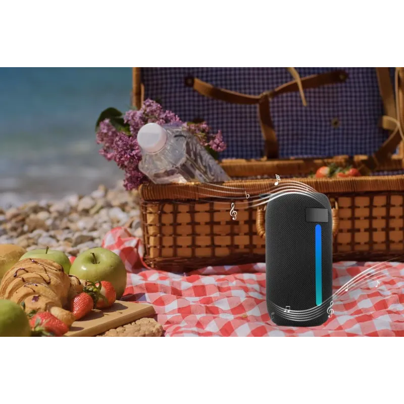 SPK-BT-LED-07 , 1xNumber of speakers , RMS rated power 5 W , Frequency range 85 - 20000 Hz , Impedance 3 Ω , Signal-to-Noise Ratio (SNR) 95 dB , Sensitivity -90 dB , Bluetooth Yes , AUX in Yes , Product type Mono portable speaker , Colour Black , Recommended usage Mobile phone / Smartphone , Card reader integrated Yes , FM radio Yes , Battery type Built-in battery , Battery life (max) 4 h , USB Type-C charging port Yes