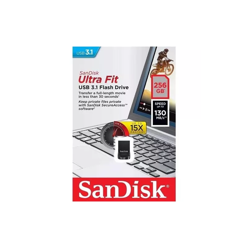 Flash drive features Encryption , Ultra Fit , Capacity 256GB , Read speed 130 MBytes/sec , Colour Black