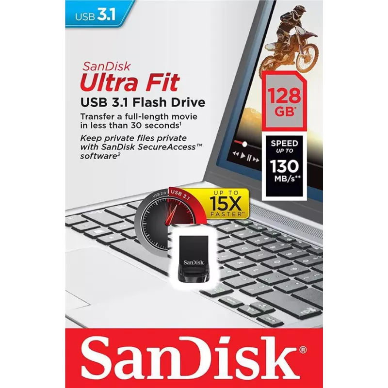 - SANDISK ULTRA FIT. CAPACITY: 128 GB, DEVICE INTERFACE: USB TYPE-A, USB VERSION: 3.2 GEN 1 (3.1 GEN 1). FORM FACTOR: CAPLESS. WEIGHT: 1.28 G. PRODUCT COLOUR: BLACK
