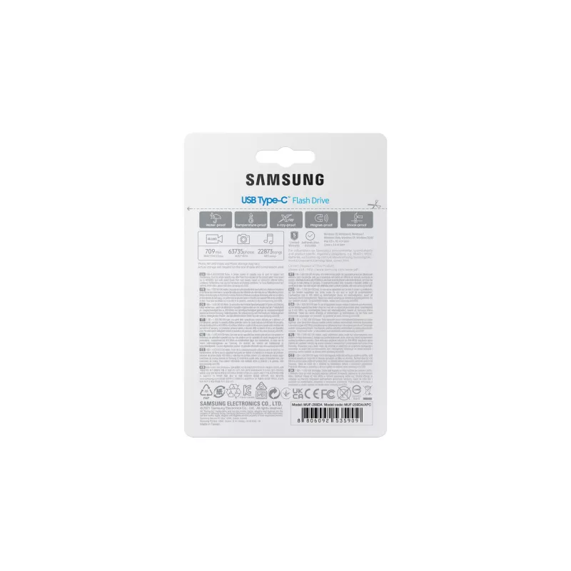 - SAMSUNG MUF-256DA. CAPACITY: 256 GB, DEVICE INTERFACE: USB TYPE-C, USB VERSION: 3.2 GEN 1 (3.1 GEN 1), READ SPEED: 400 MB/S. FORM FACTOR: CAP. WEIGHT: 3.4 G. PRODUCT COLOUR: BLUE