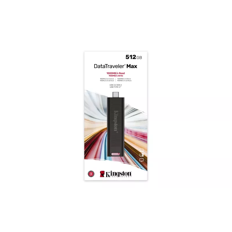 - KINGSTON TECHNOLOGY DATATRAVELER 512GB MAX 1000R/900W USB 3.2 GEN 2. CAPACITY: 512 GB, DEVICE INTERFACE: USB TYPE-C, USB VERSION: 3.2 GEN 2 (3.1 GEN 2), READ SPEED: 1000 MB/S, WRITE SPEED: 900 MB/S. FORM FACTOR: SLIDE. WEIGHT: 12 G. PRODUCT COLOUR: BLACK