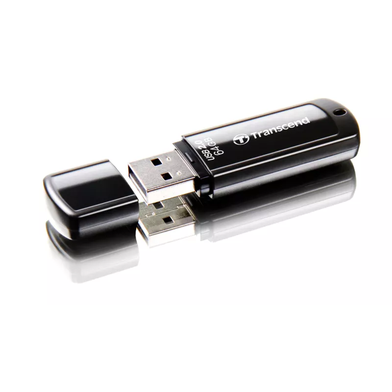- TRANSCEND JETFLASH 350 64GB. CAPACITY: 64 GB, DEVICE INTERFACE: USB TYPE-A, USB VERSION: 2.0. FORM FACTOR: CAP. WEIGHT: 8.5 G. PRODUCT COLOUR: BLACK