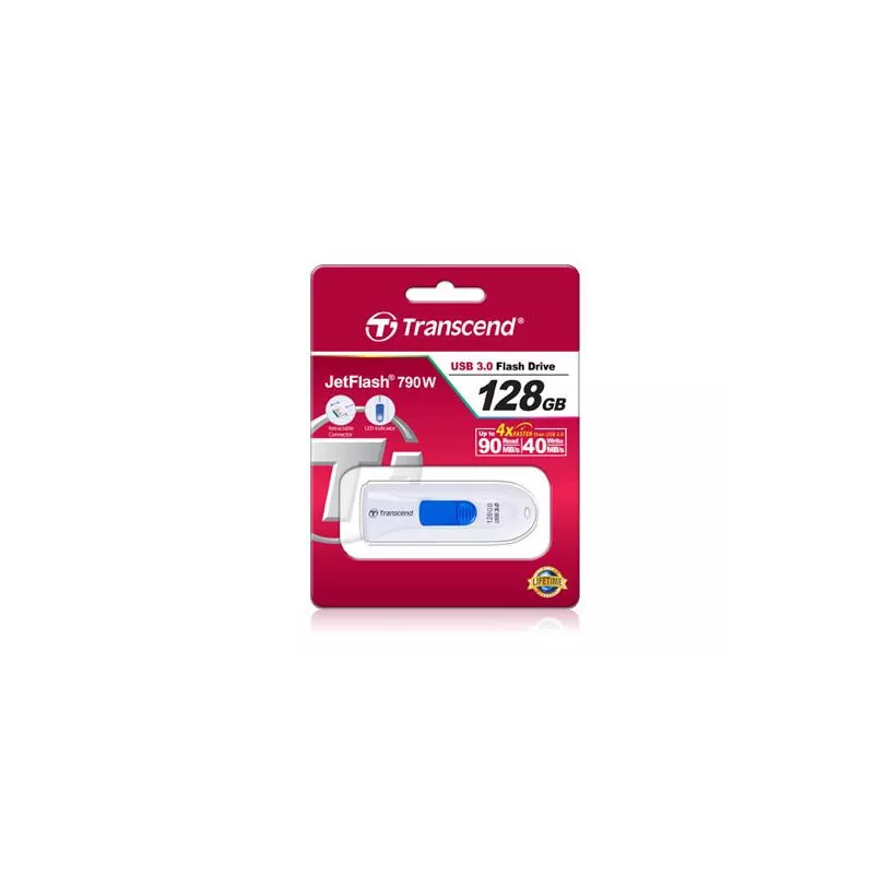 - TRANSCEND JETFLASH 790 128GB WHITE. CAPACITY: 128 GB, DEVICE INTERFACE: USB TYPE-A, USB VERSION: 3.2 GEN 1 (3.1 GEN 1). FORM FACTOR: SLIDE. WEIGHT: 4.9 G. PRODUCT COLOUR: WHITE