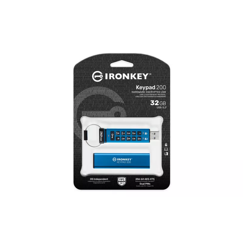 - KINGSTON TECHNOLOGY IRONKEY 32GB KEYPAD 200, FIPS 140-3 LVL 3 AES-256 HARDWARE ENCRYPTED. CAPACITY: 32 GB, DEVICE INTERFACE: USB TYPE-A, USB VERSION: 3.2 GEN 1 (3.1 GEN 1), READ SPEED: 145 MB/S, WRITE SPEED: 115 MB/S. FORM FACTOR: SLEEVE. KEYPAD INTEGRATE