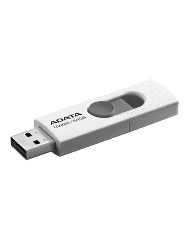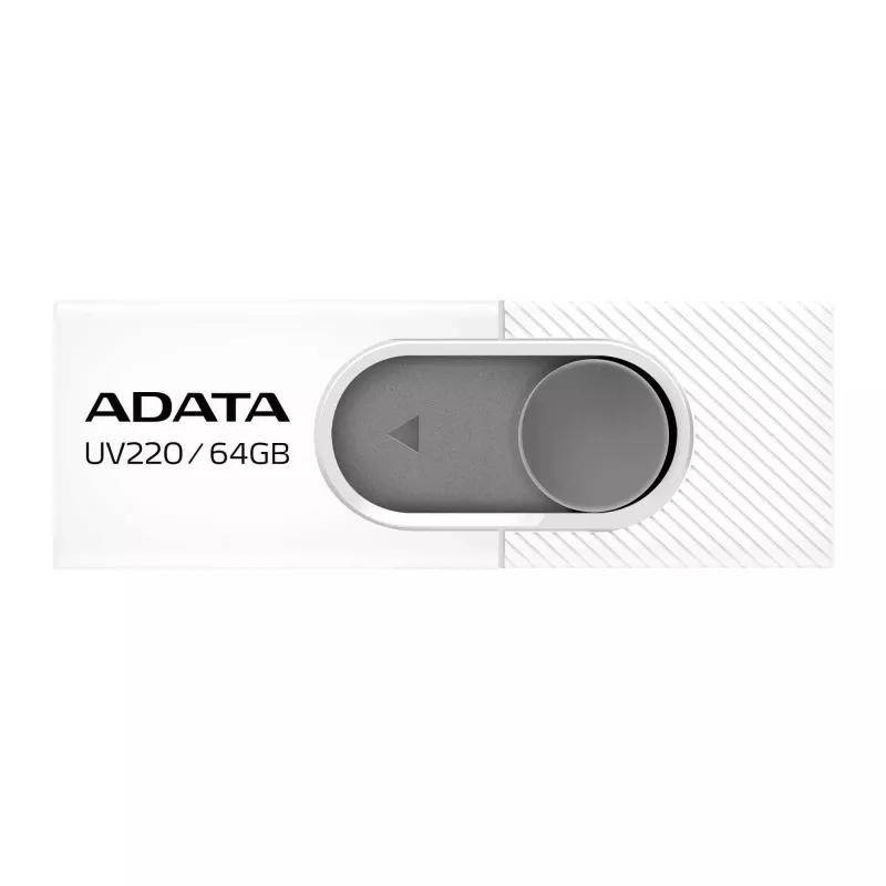 - ADATA UV220. CAPACITY: 64 GB, DEVICE INTERFACE: USB TYPE-A, USB VERSION: 2.0. FORM FACTOR: SLIDE. WEIGHT: 7.5 G. PRODUCT COLOUR: GREY, WHITE