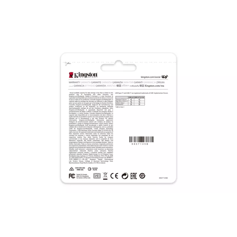 - KINGSTON TECHNOLOGY DATATRAVELER 64GB USB-C 3.2 GEN 1 70. CAPACITY: 64 GB, DEVICE INTERFACE: USB TYPE-C, USB VERSION: 3.2 GEN 1 (3.1 GEN 1). FORM FACTOR: CAP. WEIGHT: 7 G. PRODUCT COLOUR: BLACK