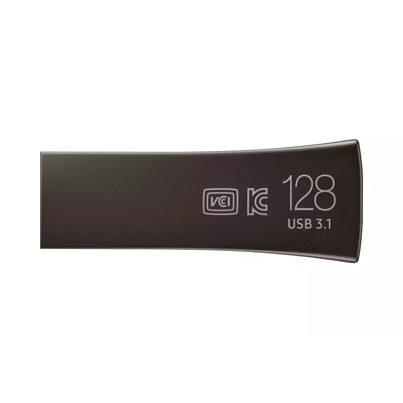 - SAMSUNG MUF-128BE. CAPACITY: 128 GB, DEVICE INTERFACE: USB TYPE-A, USB VERSION: 3.2 GEN 1 (3.1 GEN 1), READ SPEED: 400 MB/S, WRITE SPEED: 30 MB/S. FORM FACTOR: CAPLESS. WEIGHT: 10.9 G. PRODUCT COLOUR: BLACK, GREY