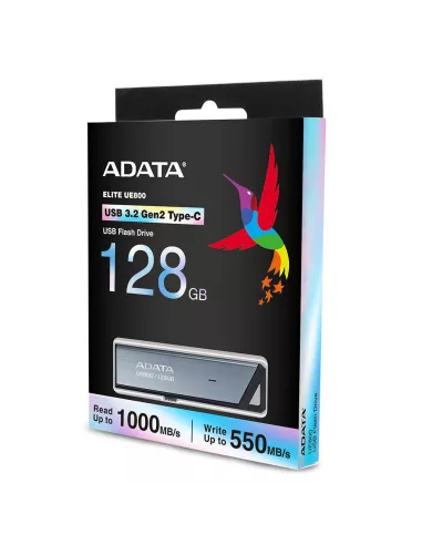 - ADATA UE800. CAPACITY: 128 GB, DEVICE INTERFACE: USB TYPE-C, USB VERSION: 3.2 GEN 2 (3.1 GEN 2), READ SPEED: 1000 MB/S, WRITE SPEED: 550 MB/S. FORM FACTOR: SLIDE. WEIGHT: 13 G. PRODUCT COLOUR: SILVER