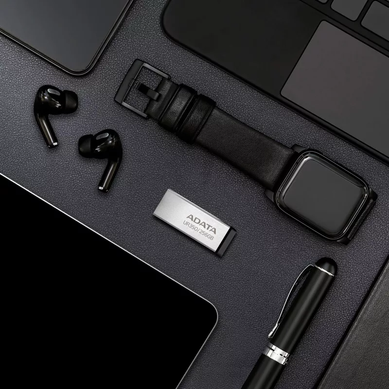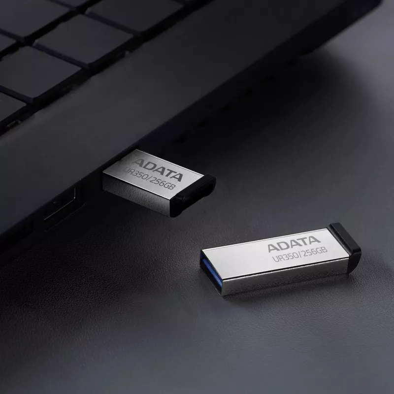 - ADATA UR350. CAPACITY: 256 GB, DEVICE INTERFACE: USB TYPE-A, USB VERSION: 3.2 GEN 1 (3.1 GEN 1), READ SPEED: 100 MB/S. FORM FACTOR: CAPLESS. WEIGHT: 3.5 G. PRODUCT COLOUR: BLACK, SILVER
