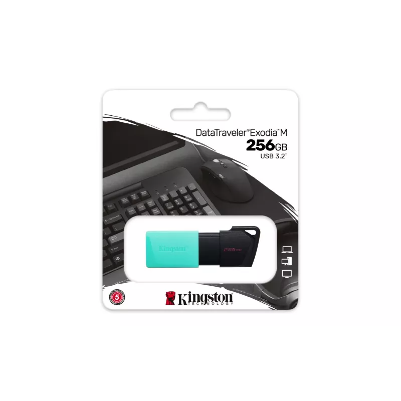 - KINGSTON TECHNOLOGY DATATRAVELER 256GB USB3.2 GEN1 EXODIA M (BLACK + TEAL). CAPACITY: 256 GB, DEVICE INTERFACE: USB TYPE-A, USB VERSION: 3.2 GEN 1 (3.1 GEN 1). FORM FACTOR: SLIDE. WEIGHT: 10 G. PRODUCT COLOUR: BLACK, TURQUOISE