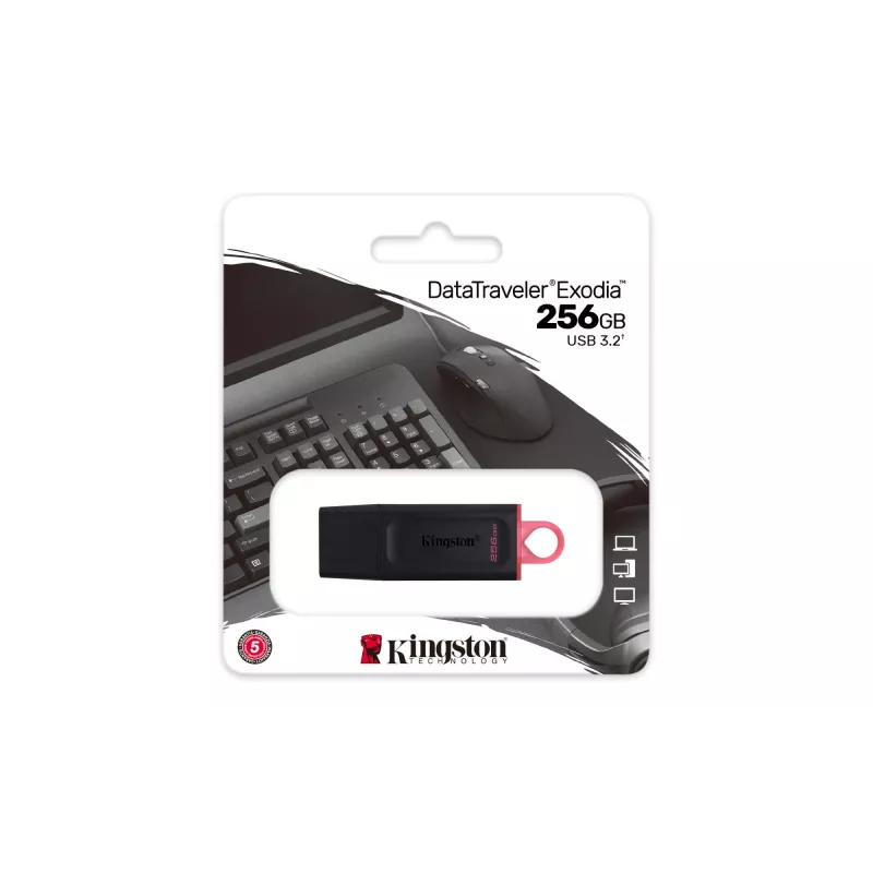 - KINGSTON TECHNOLOGY DATATRAVELER EXODIA - USB 3.2 FLASH DRIVE. CAPACITY: 256 GB, DEVICE INTERFACE: USB TYPE-A, USB VERSION: 3.2 GEN 1 (3.1 GEN 1). FORM FACTOR: CAP. WEIGHT: 11 G. PRODUCT COLOUR: BLACK, PINK