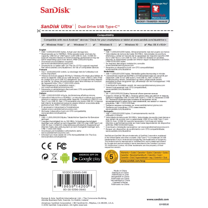 - SANDISK ULTRA DUAL DRIVE USB TYPE-C. CAPACITY: 64 GB, DEVICE INTERFACE: USB TYPE-A / USB TYPE-C, USB VERSION: 3.2 GEN 1 (3.1 GEN 1). FORM FACTOR: SLIDE. WEIGHT: 9.1 G. PRODUCT COLOUR: BLACK, SILVER