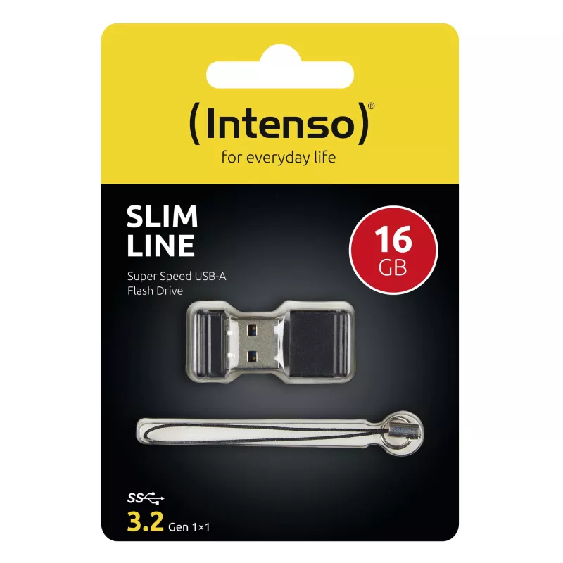 - INTENSO SLIM LINE. CAPACITY: 16 GB, DEVICE INTERFACE: USB TYPE-A, USB VERSION: 3.2 GEN 1 (3.1 GEN 1), READ SPEED: 100 MB/S. FORM FACTOR: CAP. WEIGHT: 3 G. PRODUCT COLOUR: BLACK