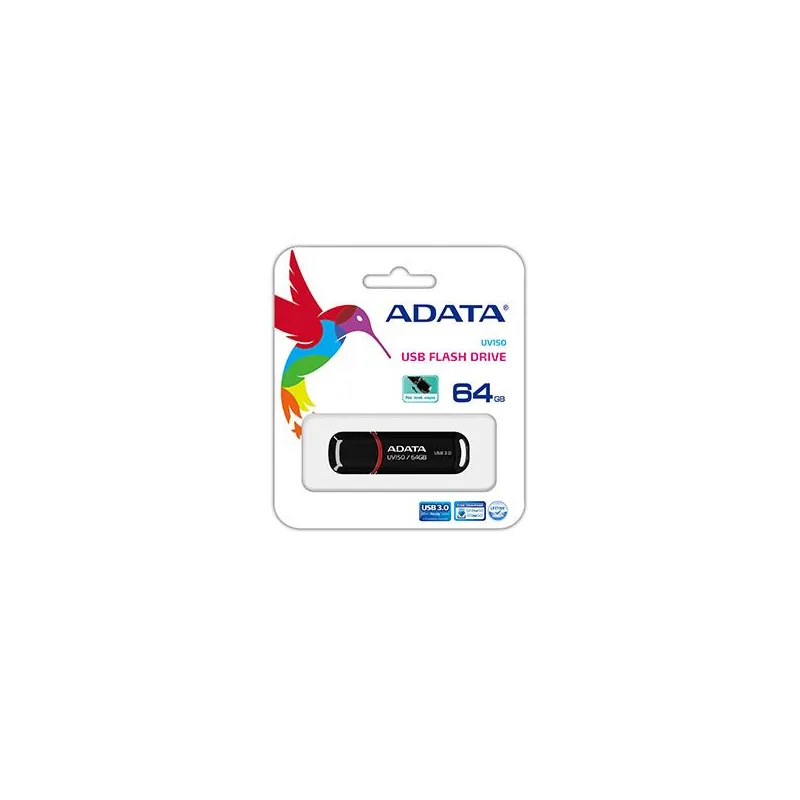 - ADATA 64GB DASHDRIVE UV150. CAPACITY: 64 GB, DEVICE INTERFACE: USB TYPE-A, USB VERSION: 3.2 GEN 1 (3.1 GEN 1). FORM FACTOR: CAP. WEIGHT: 9 G. PRODUCT COLOUR: BLACK