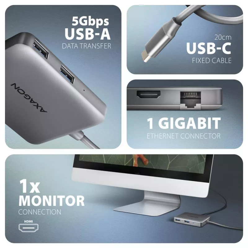 I/O HUB USB-C 5IN1 5GBPS/0.2M HMC-5HL AXAGON