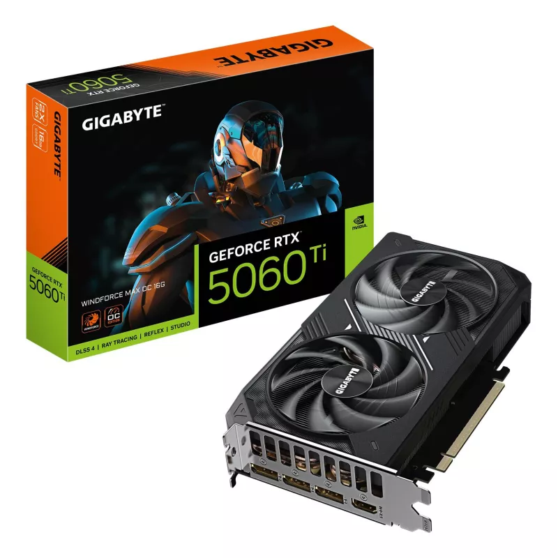 - GIGABYTE GEFORCE RTX 5060 TI WINDFORCE MAX OC 16G GRAPHICS CARD - 16GB GDDR7, 128BIT, PCI-E 5.0, 2587MHZ CORE CLOCK, 3 X DP, 1 X HDMI, NVIDIA DLSS 4, GV-N506TWF2MAX OC-16GD. GRAPHICS PROCESSOR FAMILY: NVIDIA, GRAPHICS PROCESSOR: GEFORCE RTX 5060 TI, PROCE