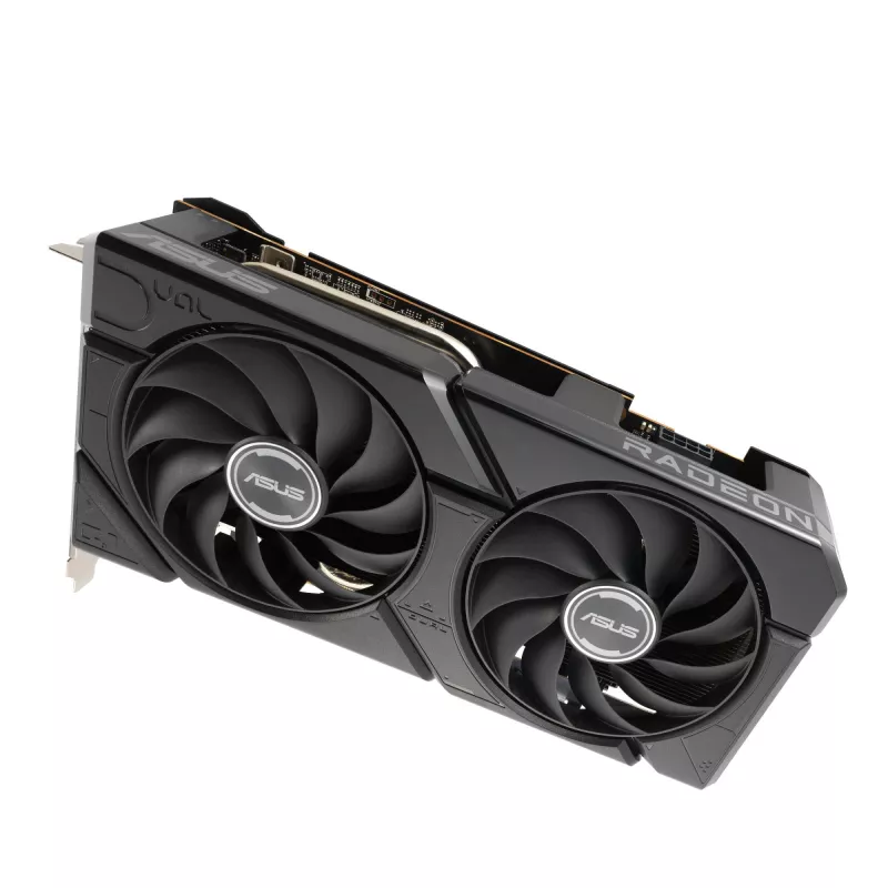 - ASUS DUAL -RX7600-O8G-EVO. GRAPHICS PROCESSOR FAMILY: AMD, GRAPHICS PROCESSOR: RADEON RX 7600. DISCRETE GRAPHICS CARD MEMORY: 8 GB, GRAPHICS CARD MEMORY TYPE: GDDR6, MEMORY BUS: 128 BIT. MAXIMUM RESOLUTION: 7680 X 4320 PIXELS. OPENGL VERSION: 4.6. INTERFA