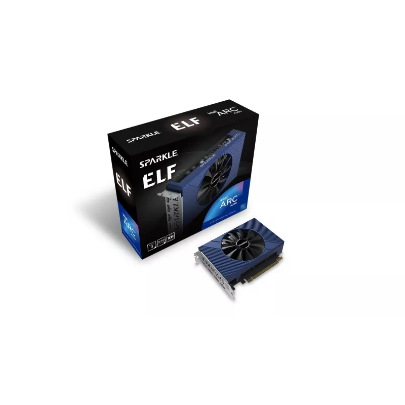 SPARKLE TECHNOLOGY INTEL ARC A380 ELF. GRAPHICS PROCESSOR FAMILY: INTEL, GRAPHICS PROCESSOR: ARC A380, PROCESSOR FREQUENCY: 2000 MHZ. DISCRETE GRAPHICS CARD MEMORY: 6 GB, GRAPHICS CARD MEMORY TYPE: GDDR6, MEMORY BUS: 96 BIT. MAXIMUM RESOLUTION: 7680 X 432