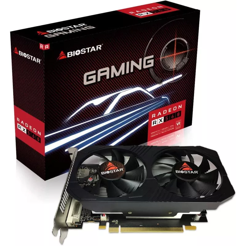 BIOSTAR RADEON RX560. GRAPHICS PROCESSOR FAMILY: AMD, GRAPHICS PROCESSOR: RADEON RX 560, PROCESSOR FREQUENCY: 1175 MHZ. DISCRETE GRAPHICS CARD MEMORY: 4 GB, GRAPHICS CARD MEMORY TYPE: GDDR5, MEMORY BUS: 128 BIT. MAXIMUM RESOLUTION: 7680 X 4320 PIXELS. DIR