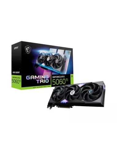 MSI GEFORCE RTX 5060 TI 8G GAMING TRIO OC. GRAPHICS PROCESSOR FAMILY: NVIDIA, GRAPHICS PROCESSOR: GEFORCE RTX 5060 TI. DISCRETE GRAPHICS CARD MEMORY: 8 GB, GRAPHICS CARD MEMORY TYPE: GDDR7, MEMORY BUS: 128 BIT. MAXIMUM RESOLUTION: 7680 X 4320 PIXELS. DIRE